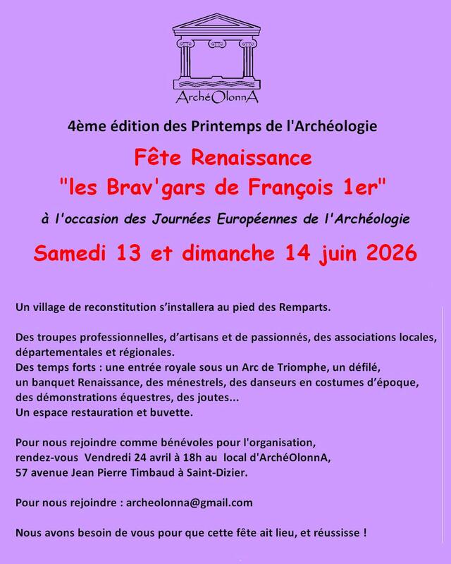 Appel à bénévoles pour Fête RENAISSANCE : Les Brav’gars de François 1er